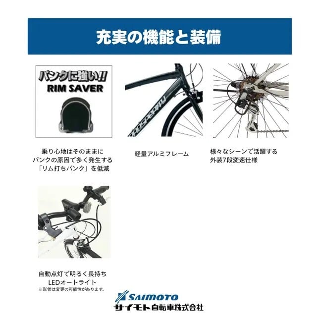 軽くて丈夫アルミフレーム・軽やかな走行が可能外装7段・オートライト仕様