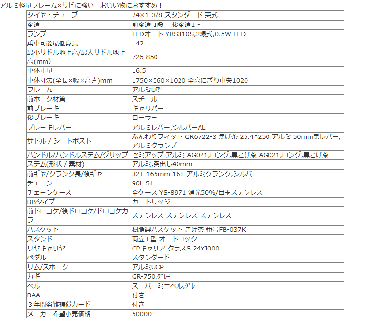 アルミ軽量フレーム×サビに強い!お買い物にピッタリな国産モデル。