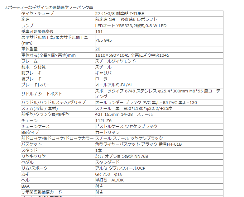 通常のチューブの代わりに特殊な素材でできたチューブを採用して おり、釘を踏んでもパンクしないチューブが付いている自転車!