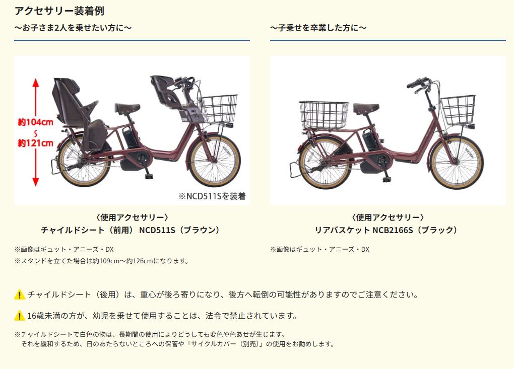 乗車適応身長 142cm以上(幼児2人同乗の場合は155cm以上)