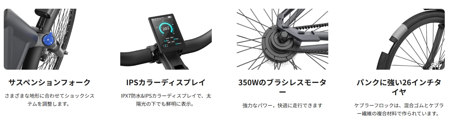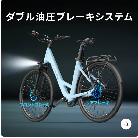 都市型自転車。21KGの電動アシスト自転車で、350Wのブラシレスモーターが強力な動力を提供し、前フォークの超強力なサスペンションシステムが快適な乗り心地を保証し、かつ最大120KGの積載能力を誇ります。