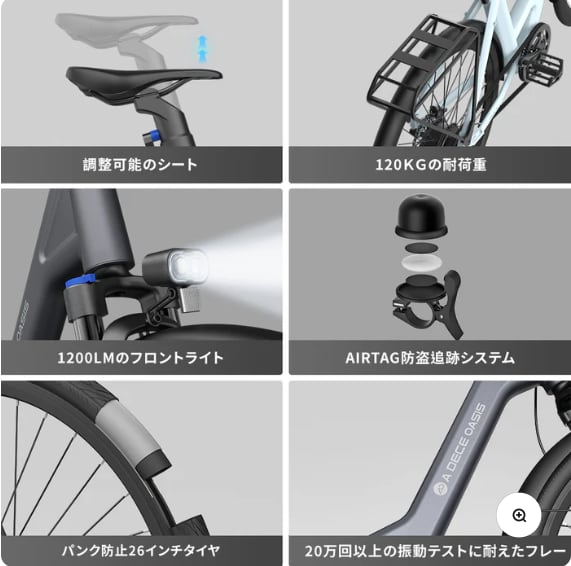 強力なパワー:20度の急斜面でも容易に登れる、最大アシスト距離100km。ADO Airはいつでも目的地までしっかりサポートし、家族との旅行を楽しむ準備が整っています。