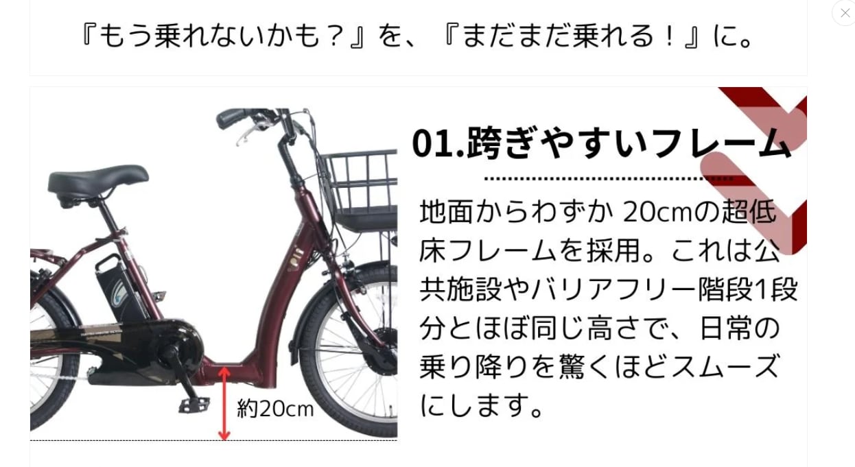 業界トップクラスのまたぎやすさで、移動に"自信”を PELTECHが新たに開発した電動アシスト自転車『LOWSTEP-TDN-209L』は、地⾯からわずか20cmの超低床フレームを採⽤。