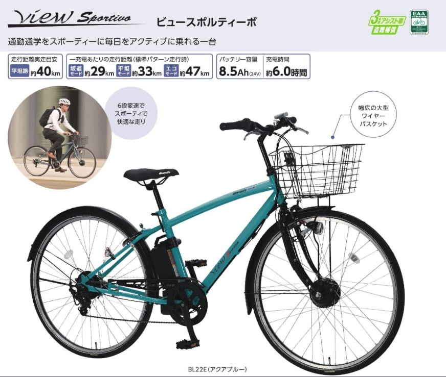 丸石サイクル 電動アシスト自転車 24V8.5Ah 27インチ 外装7段変速 ビュースポルティーボ スチールグレー ASAP277KDR の 商品概要