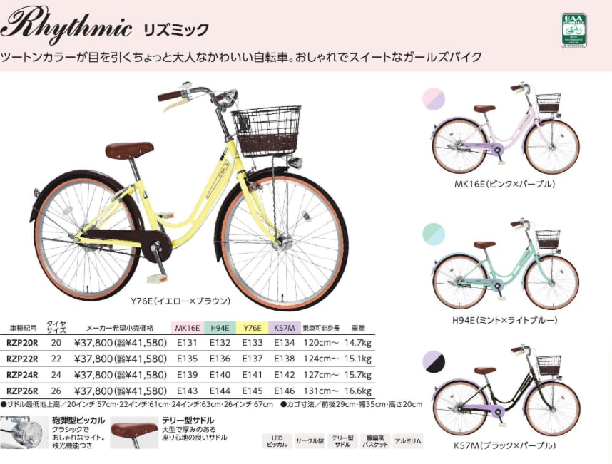 ツートンカラーが目を引くちょっと大人なかわいい自転車。